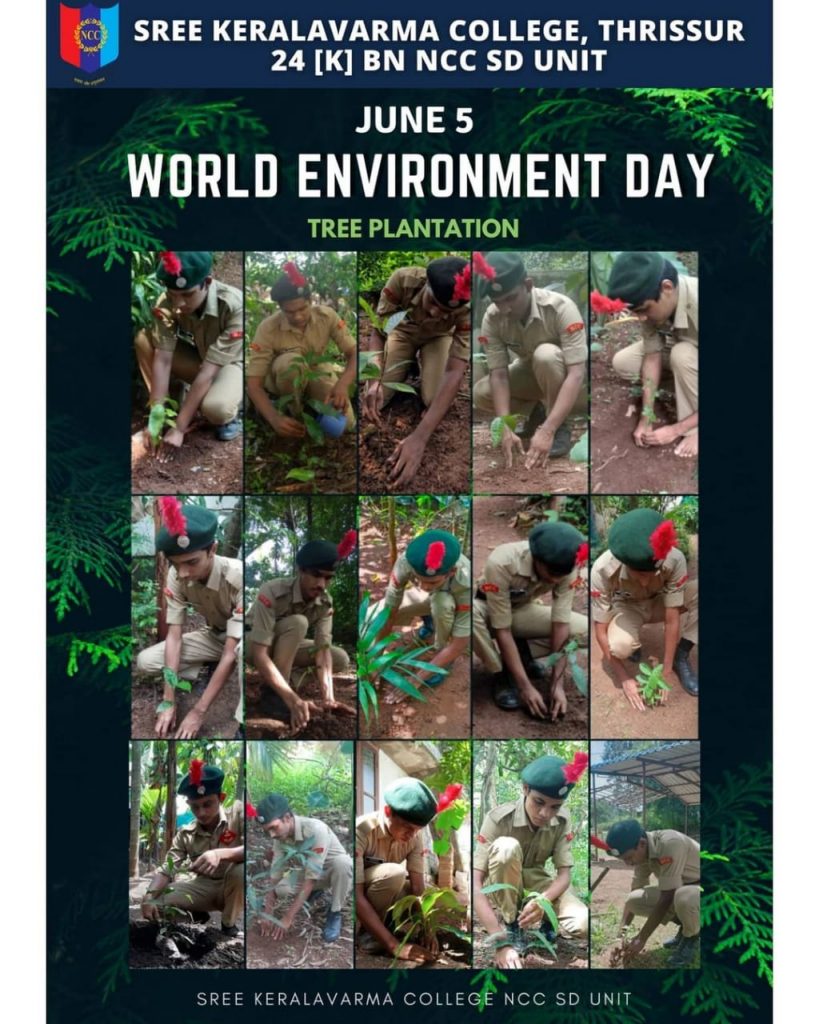 I'm a cadet of SREE KERALAVARMA COLLEGE, THRISSUR. 24 [K] BN NCC SD UNIT. In connection with world environment day, we conducted several activities like tree plantation, plantation with siblings and cleaning of surroundings etc.