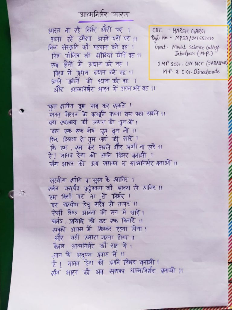 भारत को आत्मनिर्भर बनाने हेतु युवाओं को जागरूक करने वाली पंक्तियां
