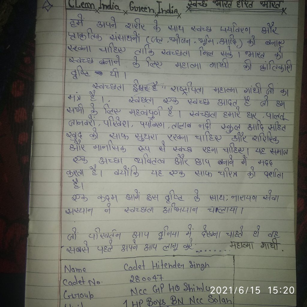Name Hitender singh Cadet no 280047 Govt pgc solan