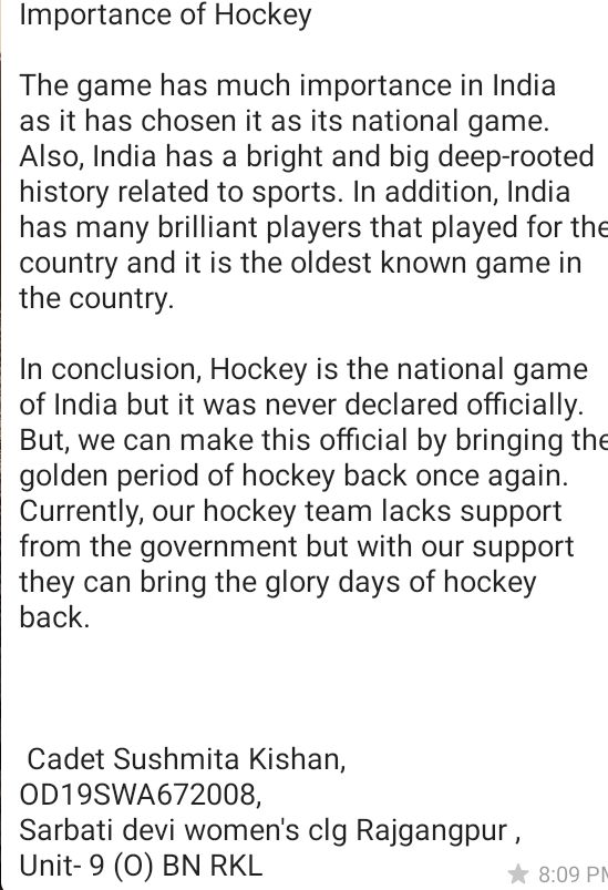 NAME- Susmita Kishan Regimental no- OD19SWA672008 clg-S.D women's clg Rajgangpur BN- 9th( Odisha)BN Rourkela