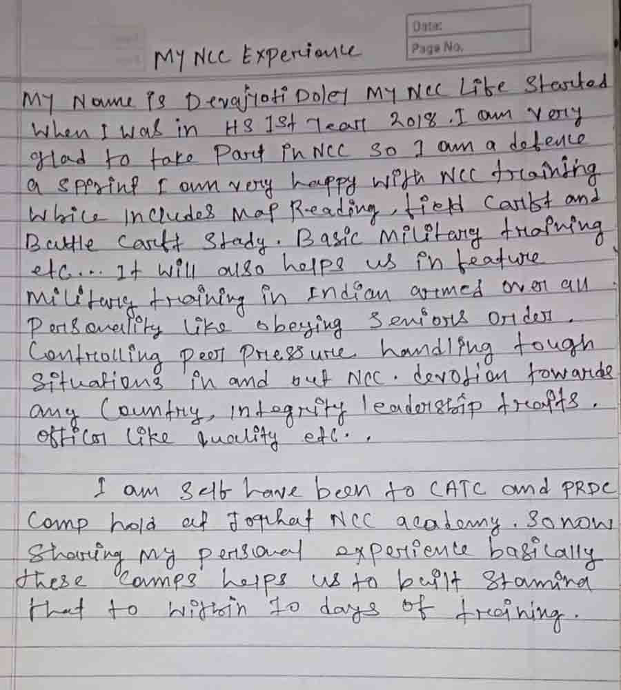 Name : Devajyoti Doley, name of College : Jengraimukh College, Class : BA 2nd Semester