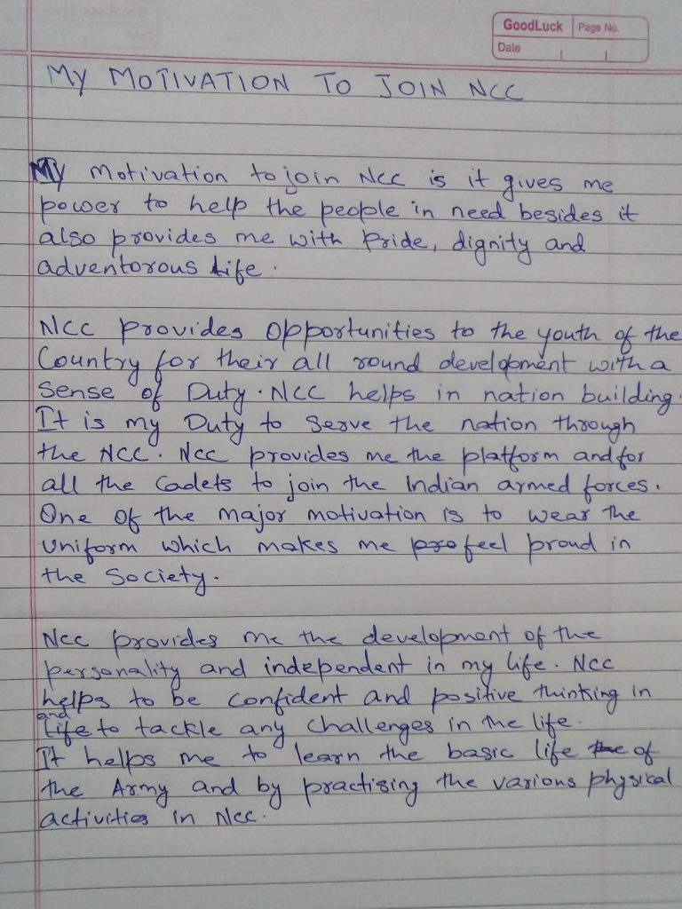 CPL DIVYA KADAM Jai Hind this was my motivation to join NCC. NCC has a different meaning I everyone's life and this is what NCC means to me.
