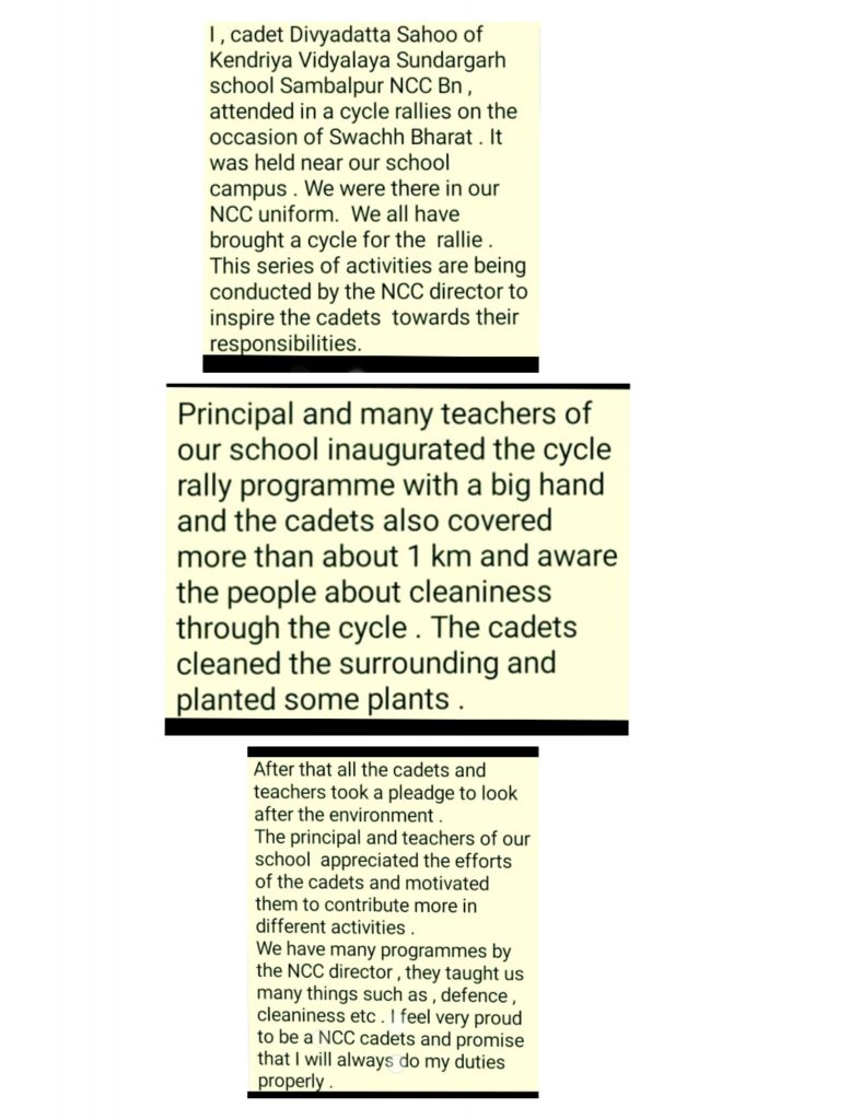 I am cdt mili mohanty... Reg no..OD19SWA101484 , Niali college Niali...