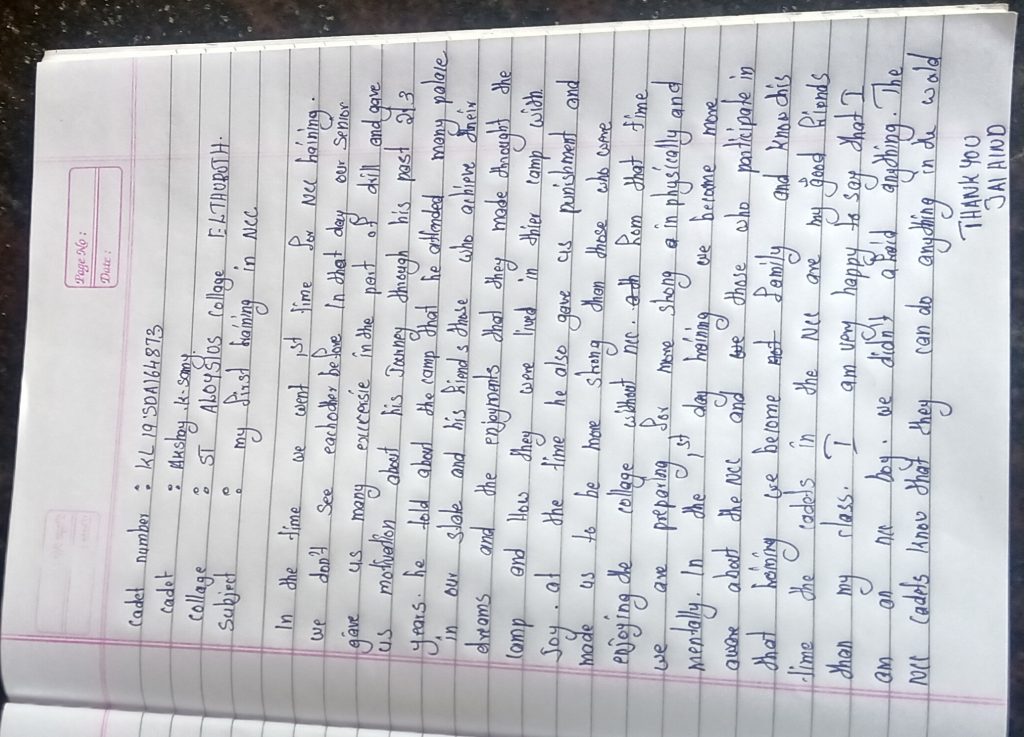 I'm cadet of St aloysius college elthuruth. I'm first year student. Ncc provided a good experience for me. It is really helpful for students to get information, enjoyeble, body fit and flexible