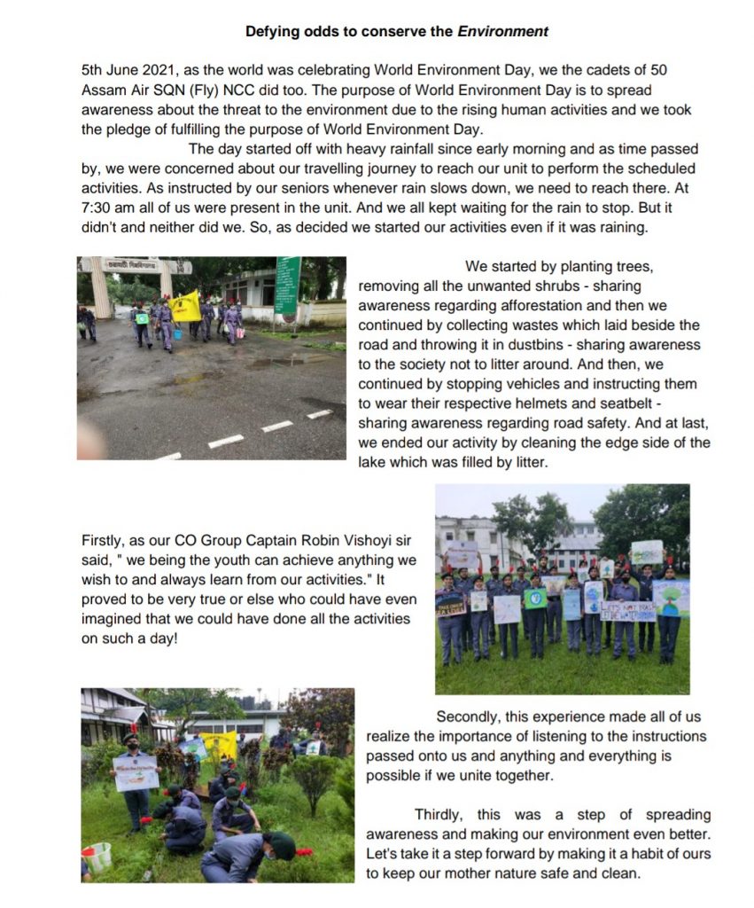 Cdt. Babita Paul from 50 ASSAM AIR SQN (FLY) NCC, am writing about my first Environment Day experience in Ncc.