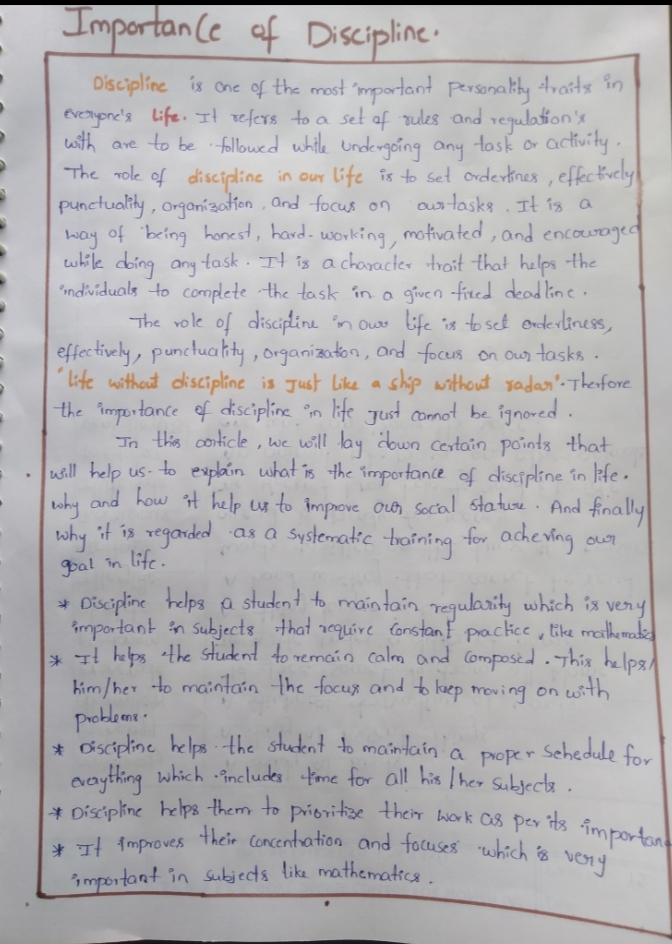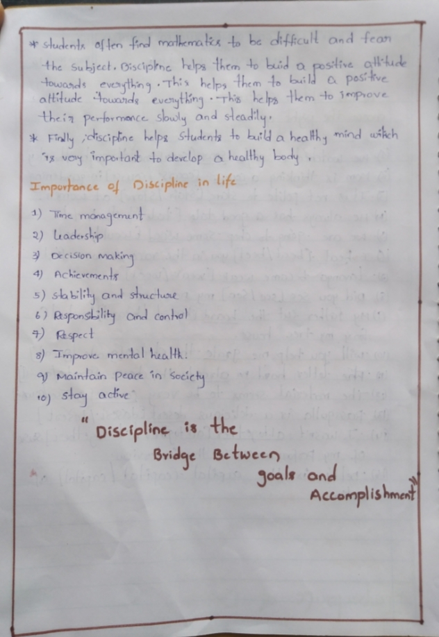 I am P chaithanya Kumari .I am studying degree second year.I am NCC cadet .My Reg no AP19SWA530999.My article is Importance of discipline