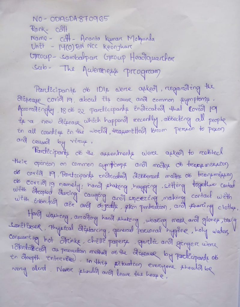 Cdt-Ananta Kumar Mohanta Regd no- 0D19SDA870965