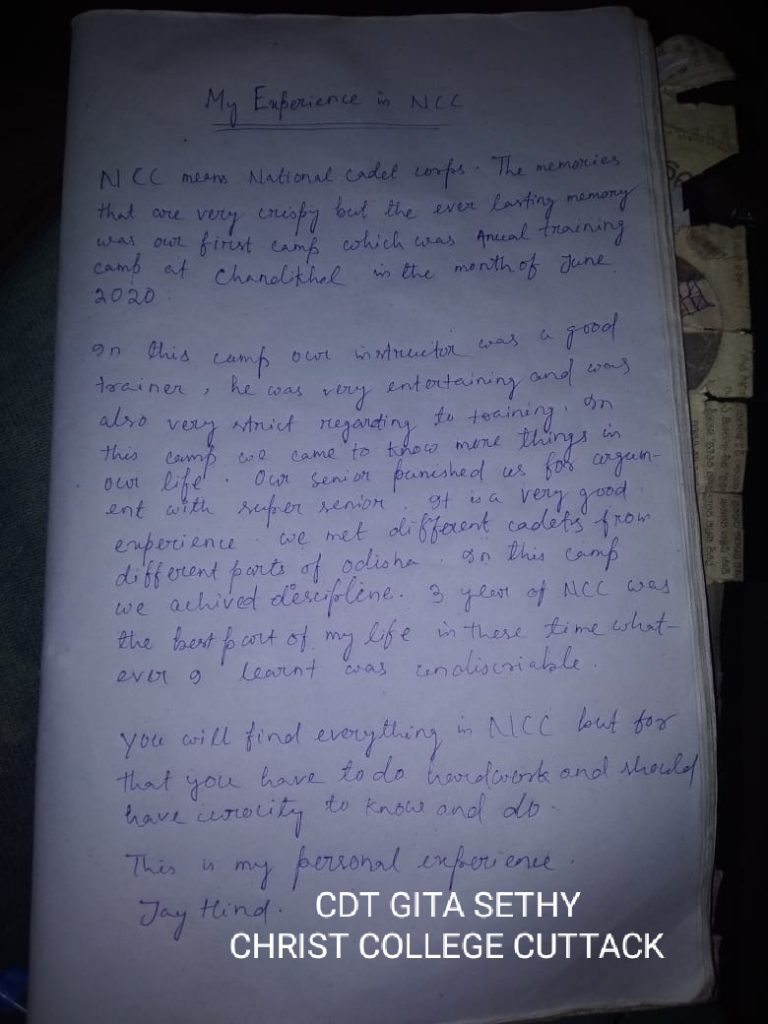 CDT GITA SETHY Christ college cuttack 1(0)BN NCC cuttack OD18SWA100077