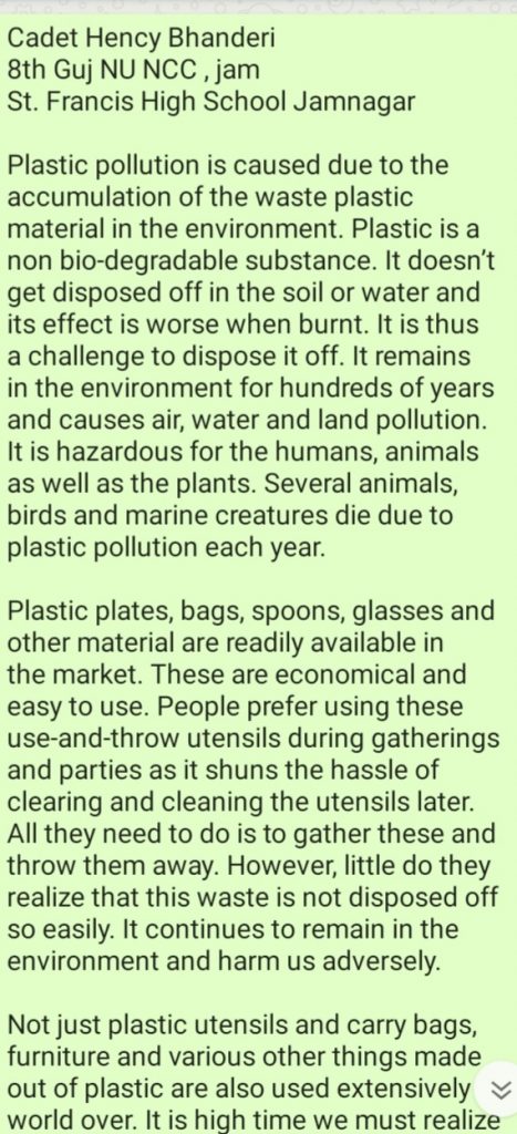 Cadet Hency Bhanderi 8th Guj Nu NCC ,jamnagar
