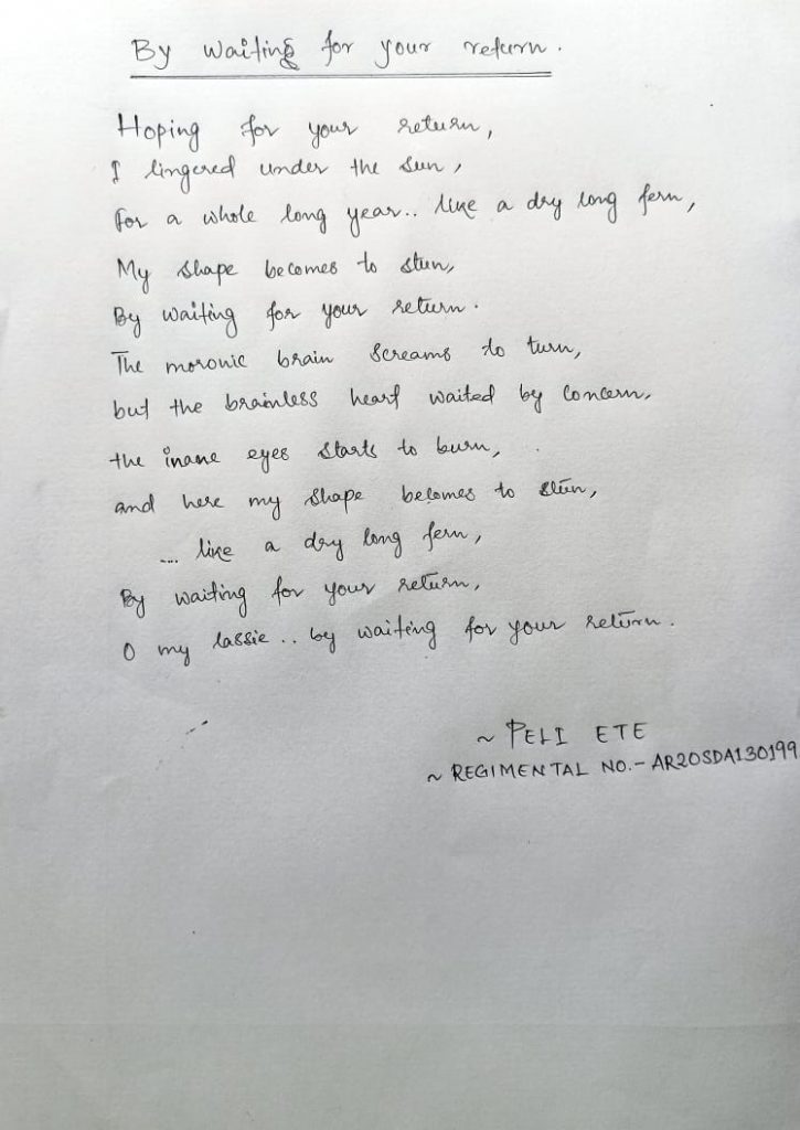 I am cadet Peli Ete of Wangcha Rajkumar Government College Deomali ,unit: 26 Assam Bn NCC