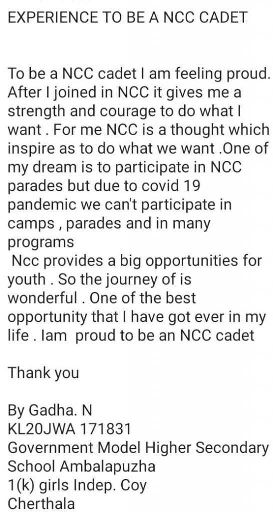 I am a Cadet of SREE KERALAVARMA COLLEGE THRISSUR 24[K] BN NCC SD UNIT. This is an Article about my Experience in NCC.