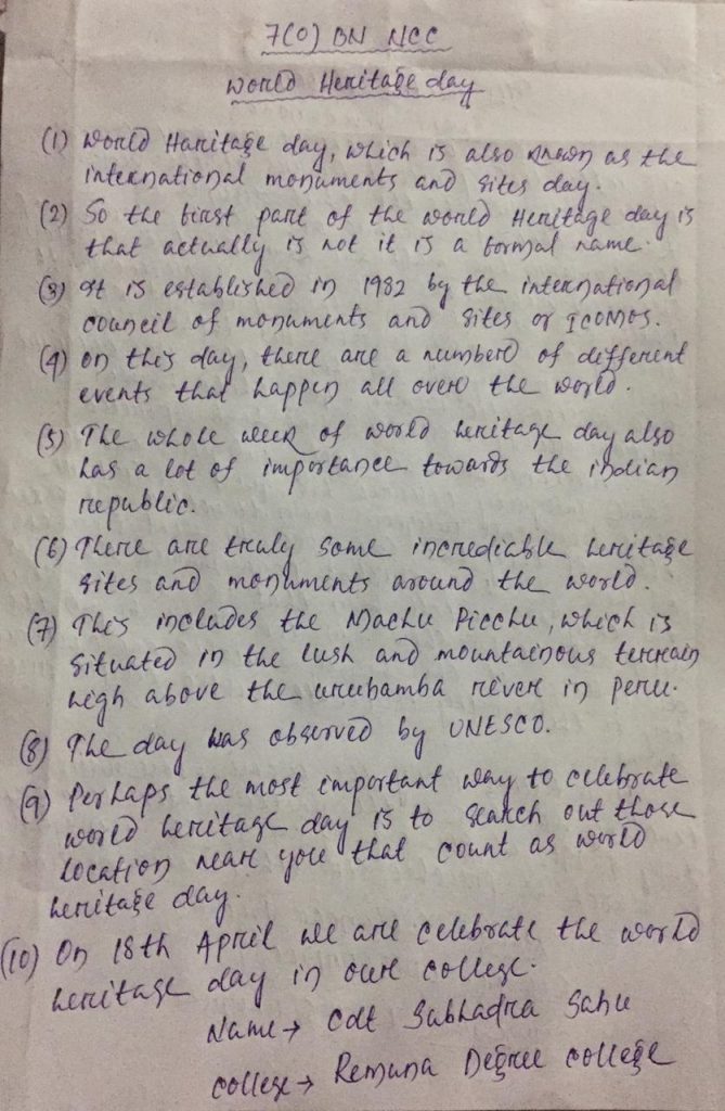 World Heritage day was observed and COVID-19 protocol was also followed.