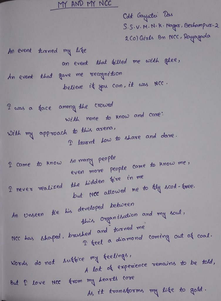 Cdt Gayatri Das S. S. V. M. N. K. Nagar, Berhampur-2 2(0) Girls Bn NCC, Rayagada