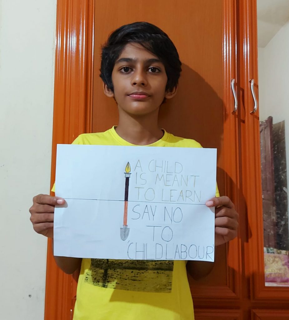 Ken is helping to get to get a stop to child labour by making a poster against it