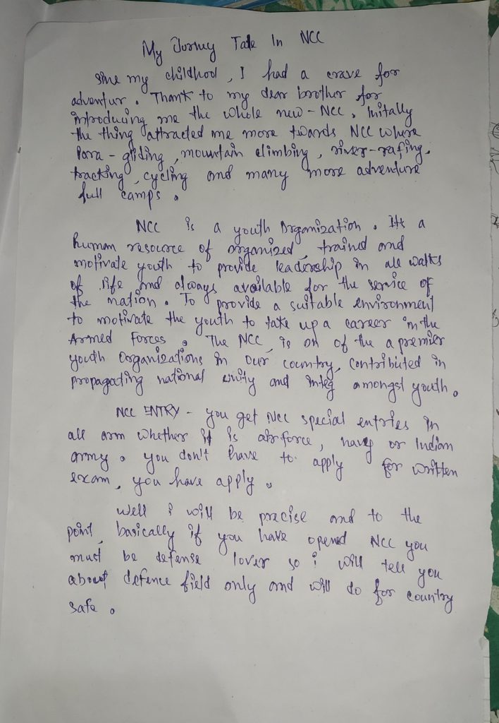 I am JD Swastik Kumar Kar regimental number ODJDA861965 directorate Bhubaneswar and group headquarter Sambalpur I study in class 10 of Jindal School, Soyabali, Barbil.