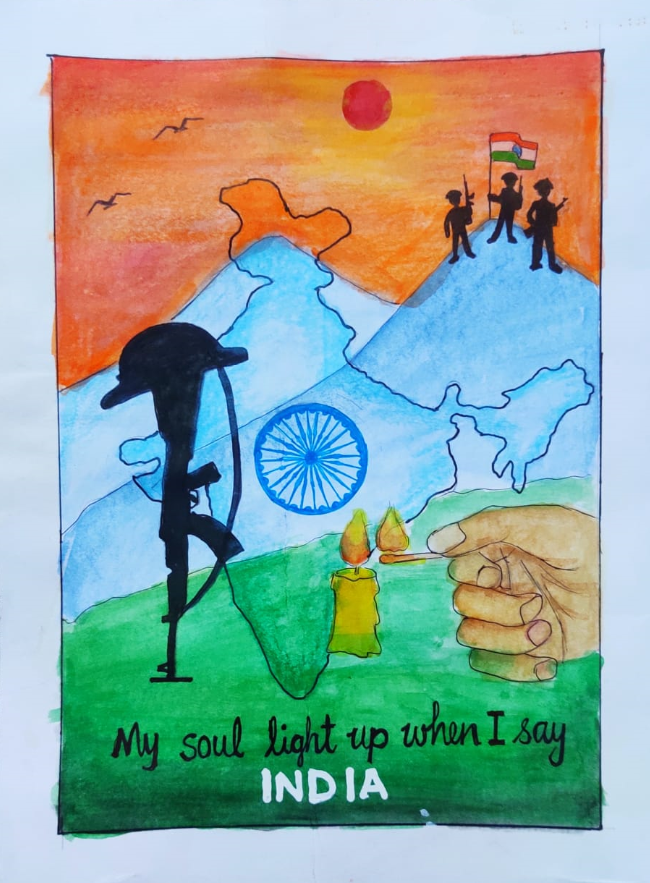 Saluting the HERO\'s of Kargil Vijay Diwas. India marks a great achievement during 1999. Drawing made by Cadet Vivek Ranjan Sahoo, of 12 (O) BN NCC Dhenkanal. Being a social helper, he has a keen interest in drawing and painting.