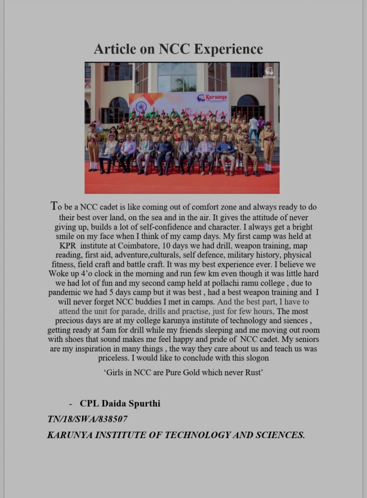 Article on NCC experience