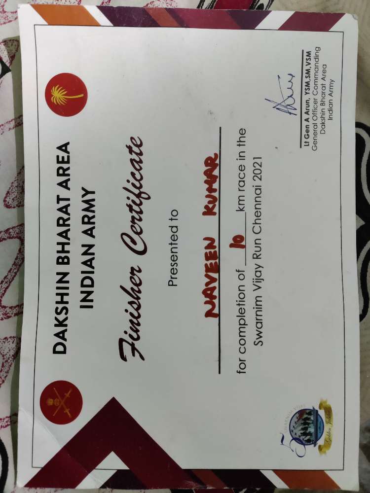 This marathon is conducted by Madras regiment in Chennai dakshin Bharat area, this is a 10km marathon