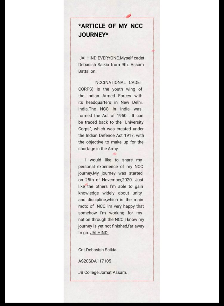 debasish Saikia 9 assam batallion ncc jorhat assam...jb college