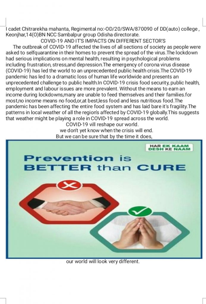 I Cadet Chitrarekha Mahanta from 14 (0) BN NCC, Kendujhar, Sambalpur group in odisha directorate.