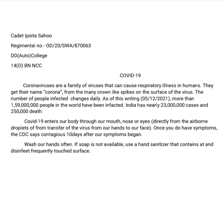 I Cadet Ipsita Sahoo from 14 (O) BN NCC Keonjhar, Sambalpur group in odisha directorate.