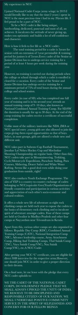 This article is written by NCC Cadet Anushka Satpathy.