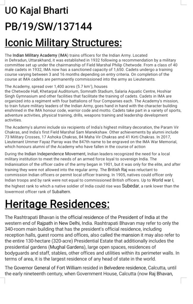 UO kajal bharti PB/19/SW/137144 Activity - iconic military structure
