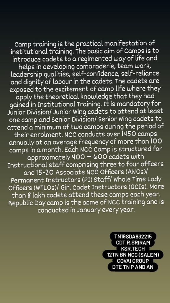 I'm cadet R Sriram I share my camp experience in above Article