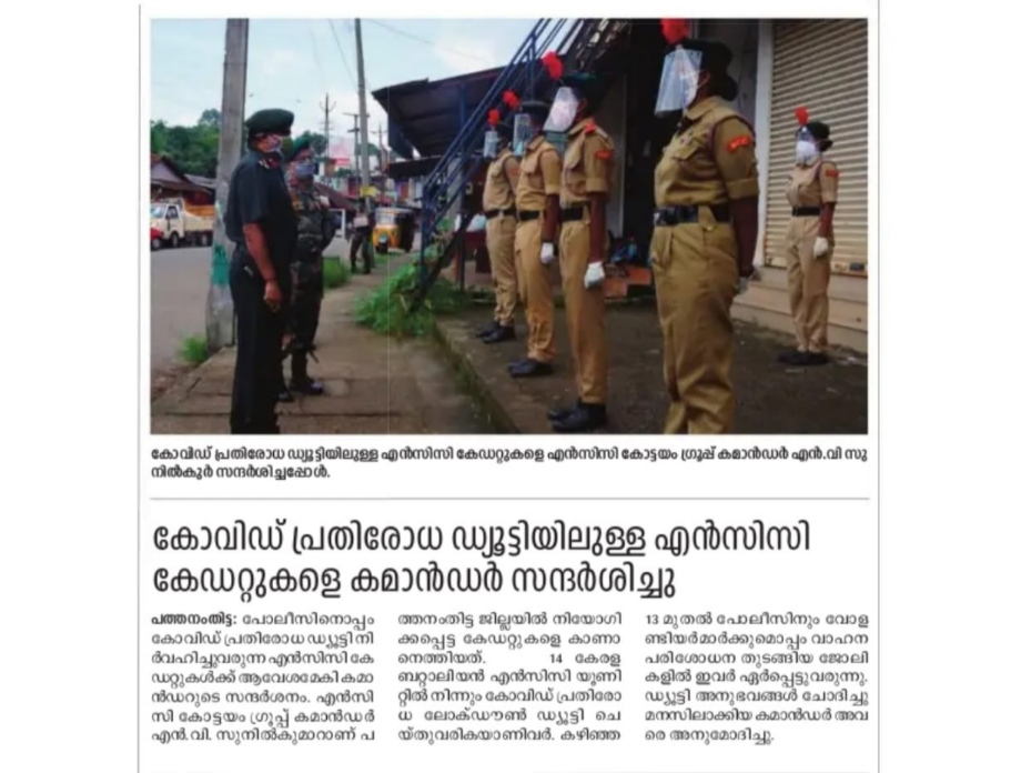 NCC 14 KLBN Pathanamthitta Cadets at COVID DUTY.