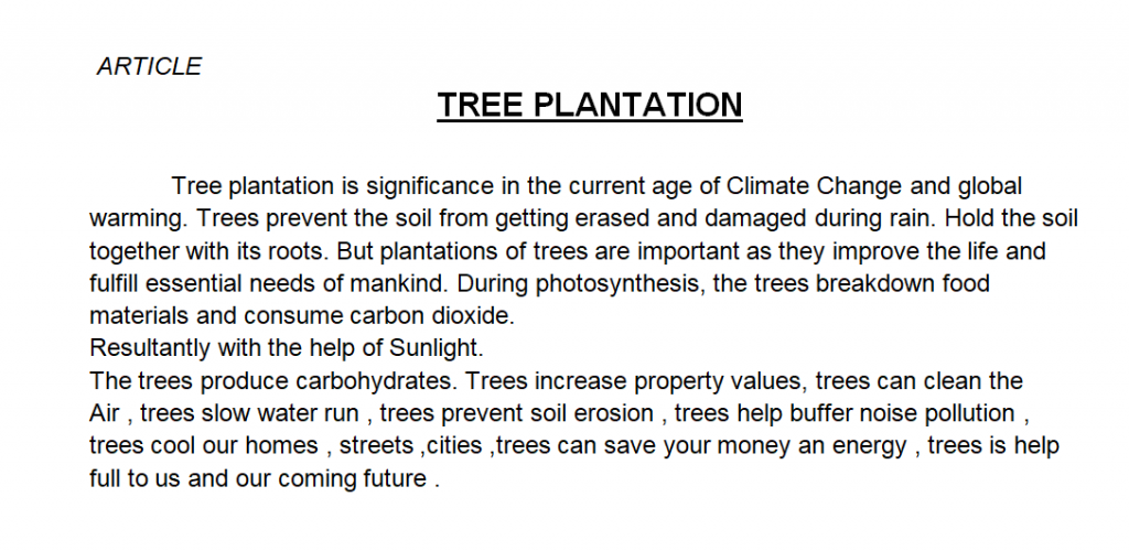 A Short Article on Tree Plantation by Cdt. PANGERKUMZUK LONGKUMER NL20SDA100045 St. Joseph College, Jakhama Gp - KOHIMA Dte- NER