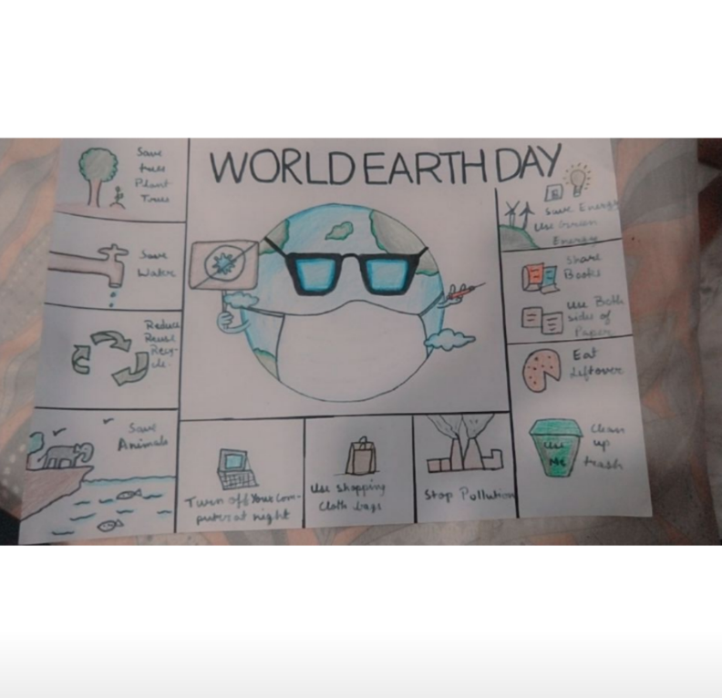 Cadet Mabel emphasizing on the topic save earth through a poster.