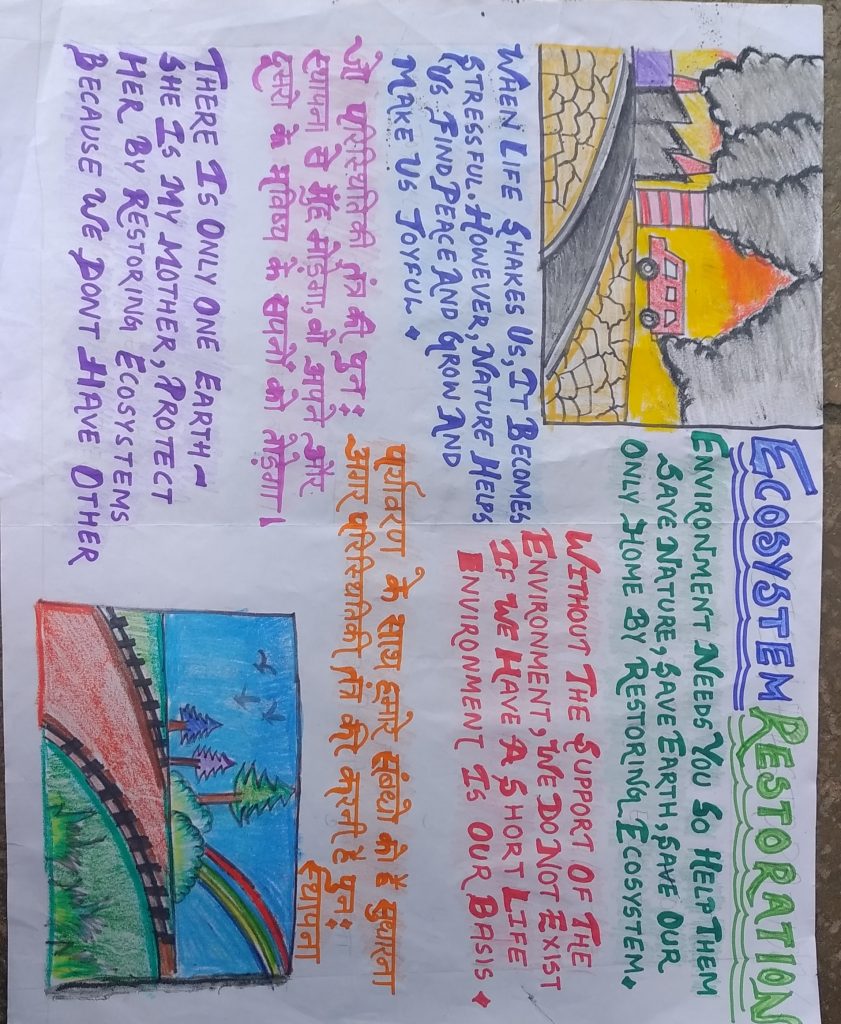 This is cadet Kesar Tiwari from JWA 13 Ben Bn Air force school Hasimara. My slogan and drawing shows the importance of ecosystem restoration Thank you Jai Hind