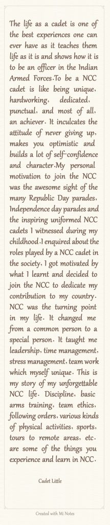 jai hind , I am cadet Monika HR20SWA274426 , Unit 4 HR BN NCC, Nuh, Group HQ Rohtak from Sec 9 Government PG college