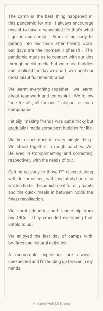 I am sharing a wonderful experience of my first NCC camp