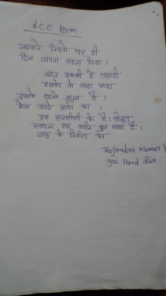 My name is yutik goyal.A NCC cadet from 3 PUNJAB HARYANA HIMACHAL PRADESH NAVAL UNIT NCC from R.B.D.A.V. SENIOR SECONDARY PUBLIC SCHOOL