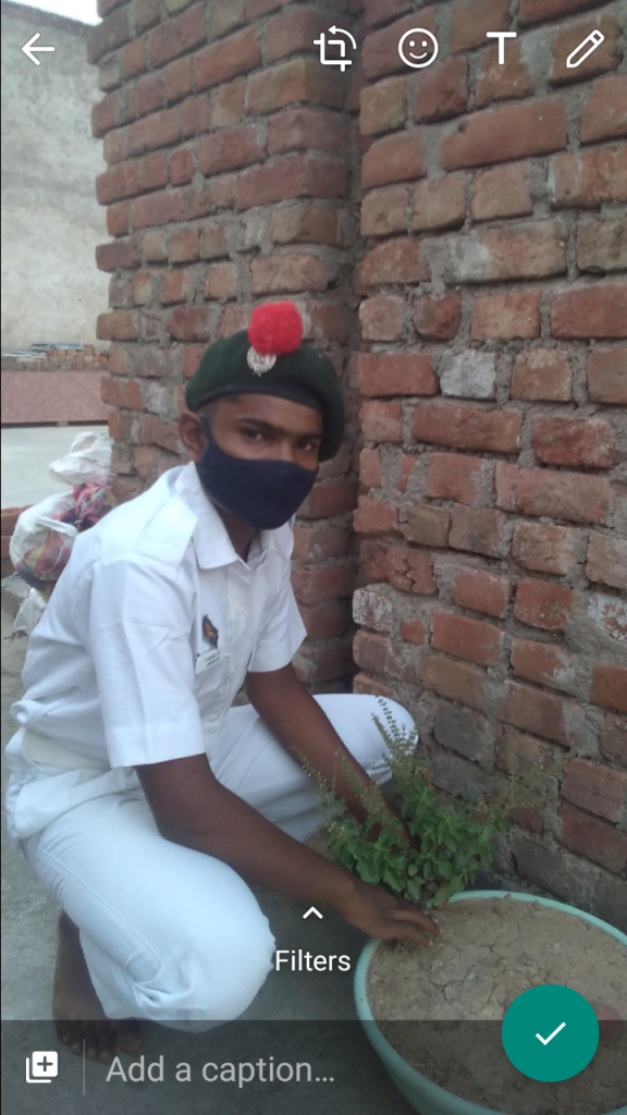 Ncc cadets taking part in planting trees and cleaning surroundings on environmental day.