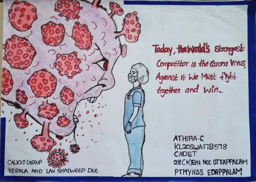 There was a poster making competition related to corona at our school and i drew it as part of it