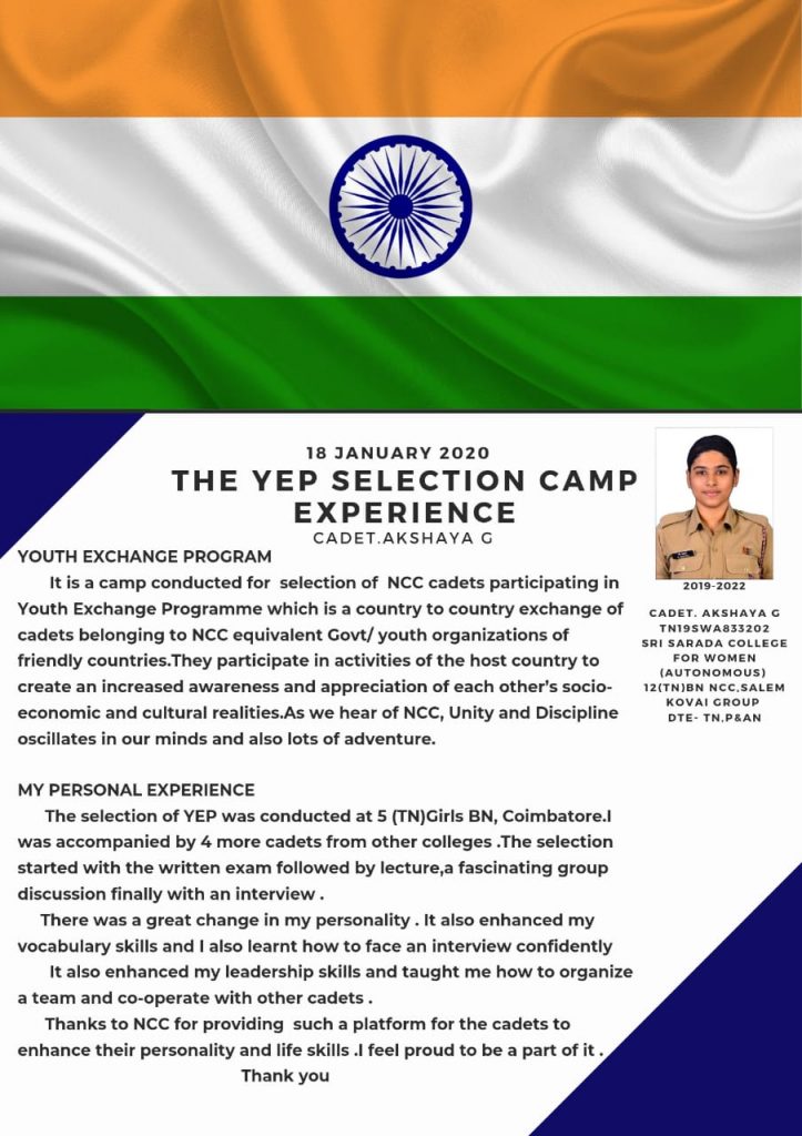 Cdt.G.Akshaya TN19SWA833202 12 (TN) BN SRI SARADA COLLEGE FOR WOMEN AUTONOMOUS