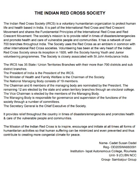 REG NO. - OD20SWA660102 RANK - CADET INST-ISPAT AUTONOMOUS COLLEGE UNIT-9(O) BN NCC, ROURKELA