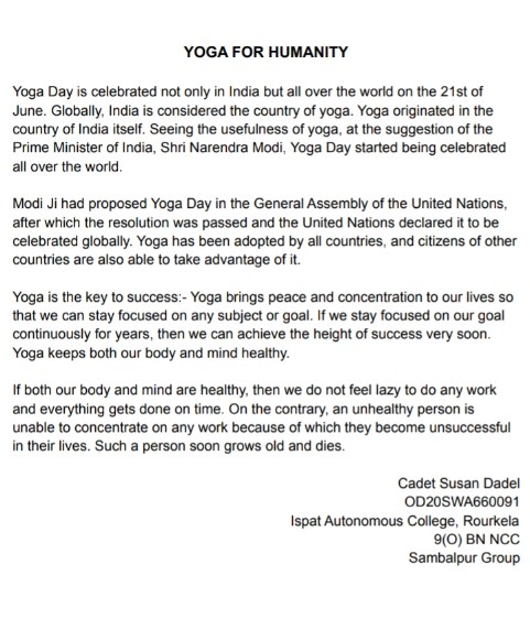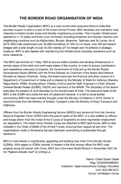 Cadet Susan Dadel OD20SWA660091 Ispat Autonomous College, Rourkela 9(O) BN NCC Sambalpur Group
