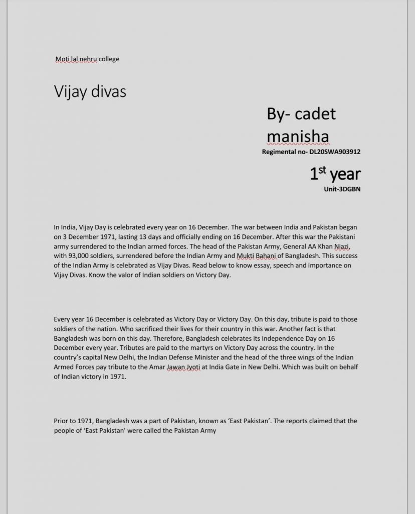 I am Cadet V.Ramya sri (JW) Unit : 5 Punjab Batalion Class : X School : KV 3 Patiala, Punjab.