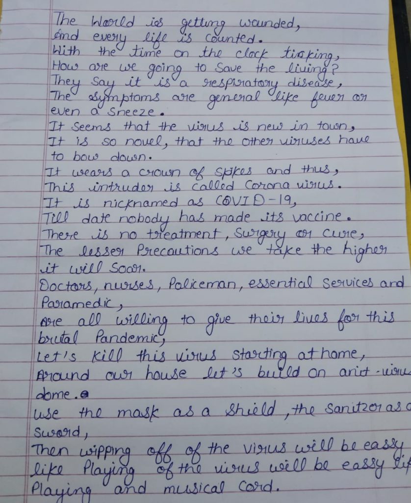 It is piece of poetry on the drastic situation created by the pandemic and expresses a ray of hope.