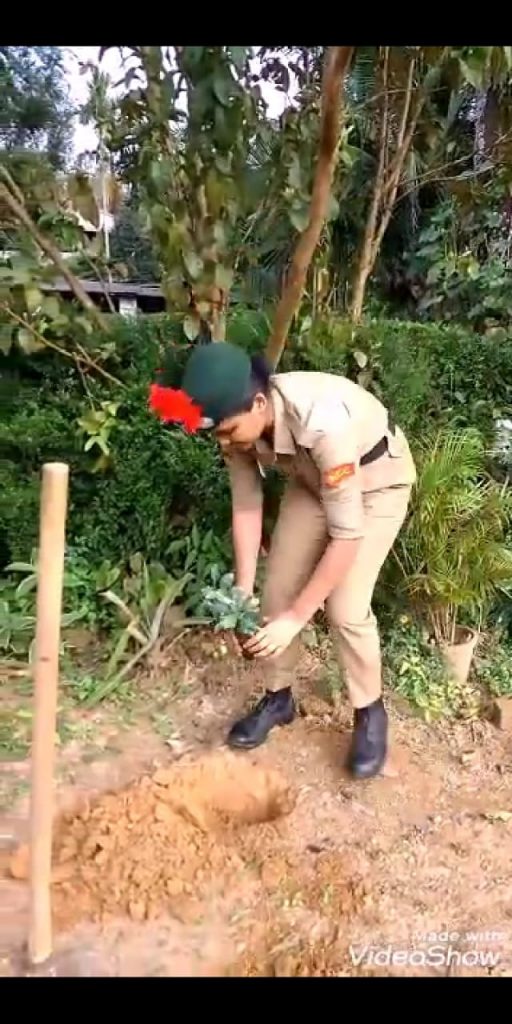 I CDT Chondamma K.P from St philomena college puttur 19 Karnataka Bn Ncc Kar and Goa Dte on behalf of environmental day have planted a sapling