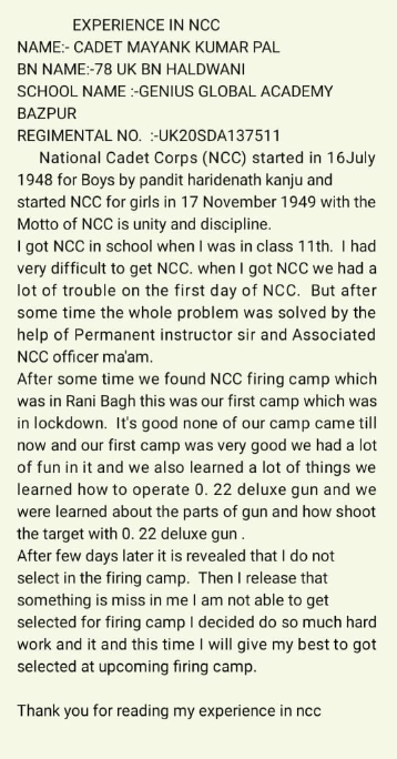 Written by cadet Mayank Kumar Pal from senior division Genius global academy