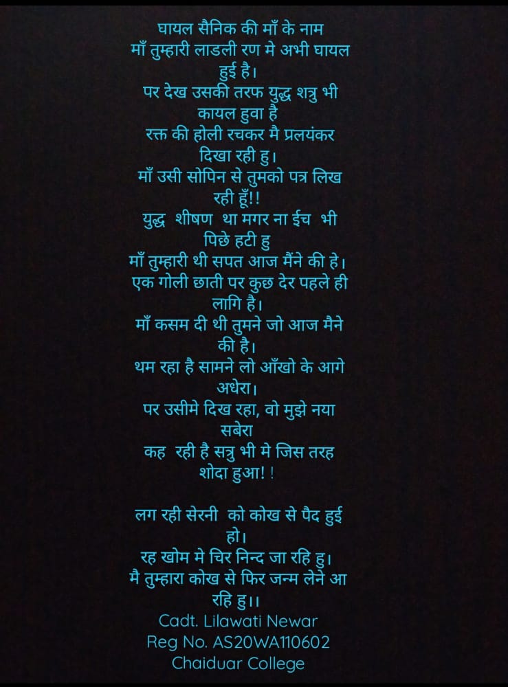 Lilawati Newar, i have written a hindi poem , chaiduar college
