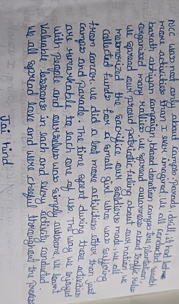Jai Hind I am Senior SUO Manikanth Patil From Lingaraj College in 26 Karnataka Ncc Battalion Belagavi