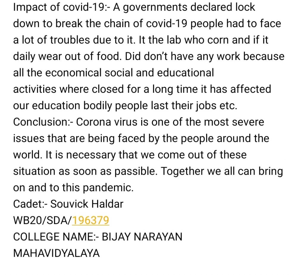 The author is an NCC cadet and he is sharing his experiences during his three years journey in NCC as a cadet