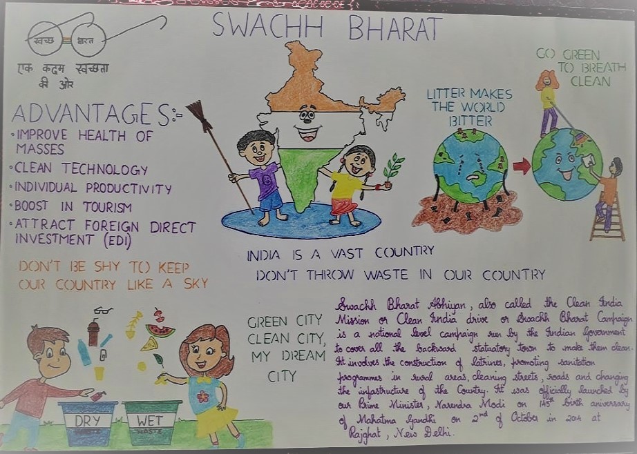 This is L/Cpl_R. Ashwin from Tamil Nadu and Andaman and Nicobar Directorate, Madras A Group, 1(TN) Medical Unit. I am studying at Jawahar Vidyalaya Senior Secondary School. The attached image is about Swachh Bharat with a few slogans and drawings.