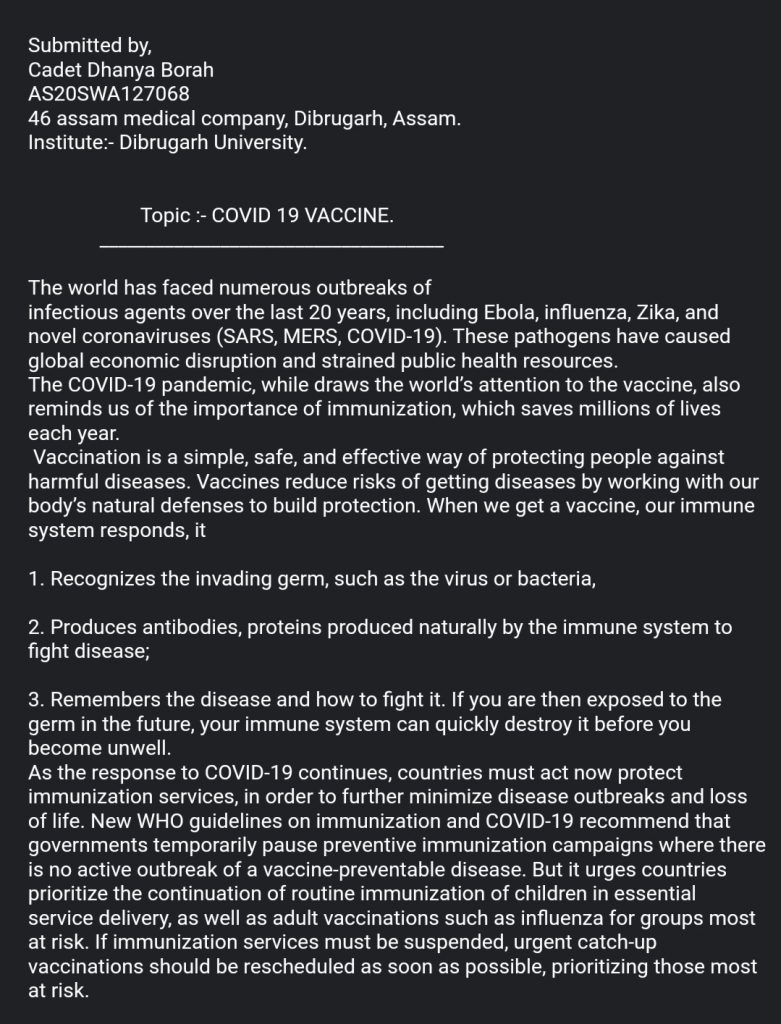 Short writeup on covid 19 vaccine