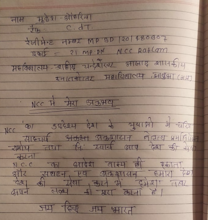 I am Mohit Pohwani NCC Seargent Officer Regiment No.: RJ/JD/276964 1 Raj Air Sqn NCC